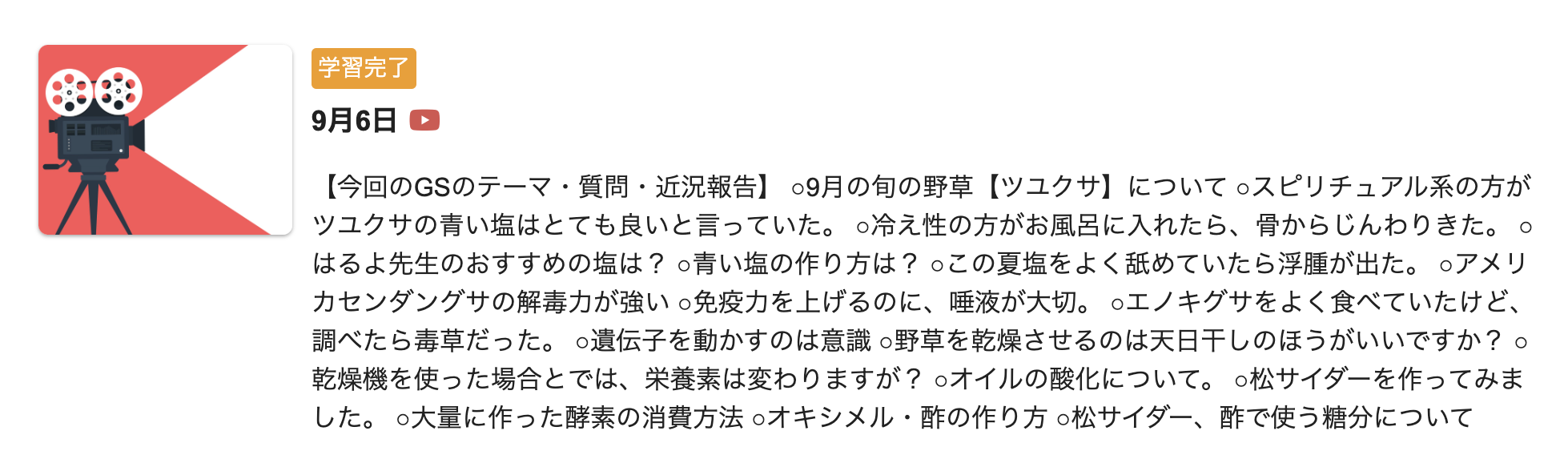 解説動画以外にも、FBやグループセッションでシェアさせていただいている新着情報(松のお酢、黒焼き、オキシメルなど)を参考に、様々な野草×発酵のスキルを身につけていただけます。
